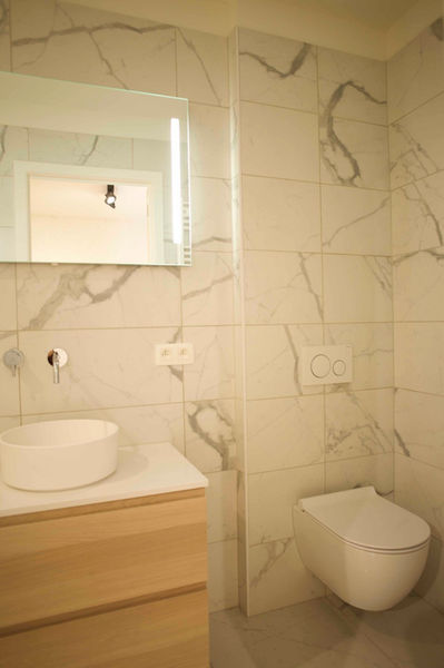 The apartments have a separate bedroom, a large living room, open kitchen with Bosch kitchen appliances, separate space for washing machine and dryer, 2 WCs, bathroom with rain shower and sink. Cozy terrace of 6m2 (20m2 for the 1st floor).