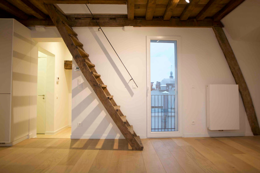 The apartments are equipped with contemporary comfort, high ceilings, with preservation of the historical elements and a beautiful view of the Antwerp Cathedral.